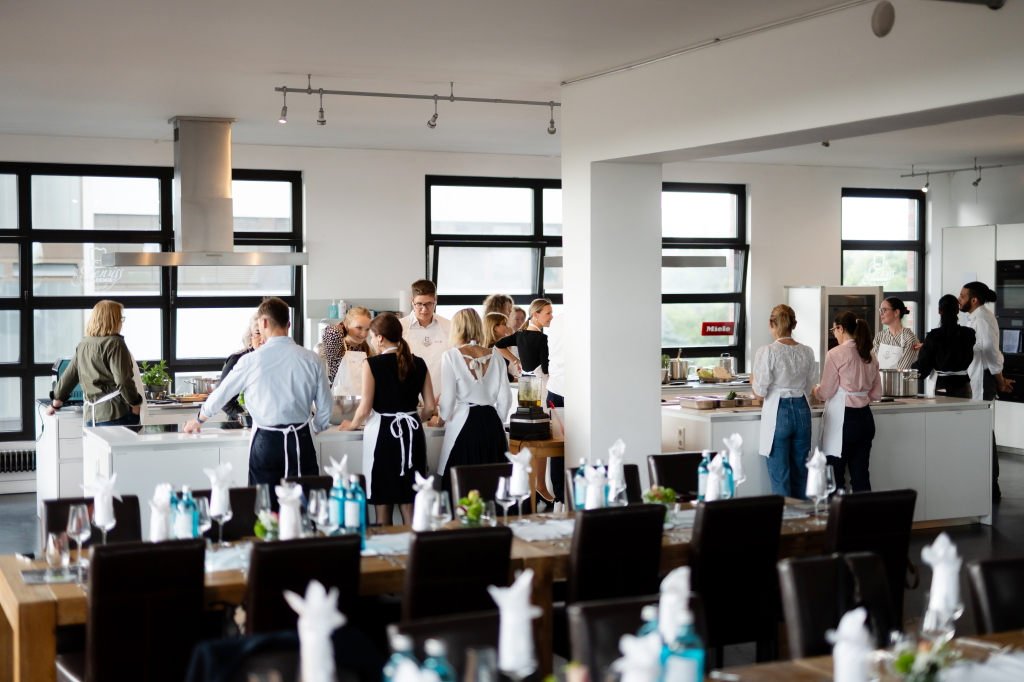 Ob als Firmenfeier, Teamevent oder Incentive – eine Küchenparty in unserer Kochschule in Frankfurt verbindet Genuss mit Geselligkeit. Statt starr am Tisch zu sitzen, bewegen sich Ihre Gäste von Kochstation zu Kochstation und erleben kulinarische Vielfalt hautnah.