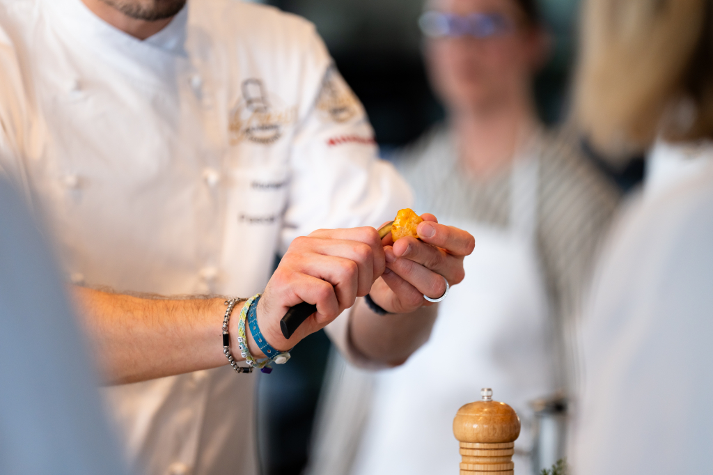 Machen Sie Ihr nächstes Geschäftsessen, Firmenevent oder Gala-Dinner zu einem besonderen Erlebnis. Beim exklusiven Show Cooking in unserer Kochschule in Frankfurt stehen Genuss, Austausch und kulinarische Highlights im Mittelpunkt.